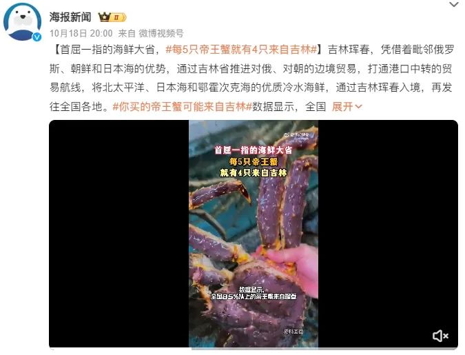 話題*#每5只帝王蟹就有4只來自吉林#*