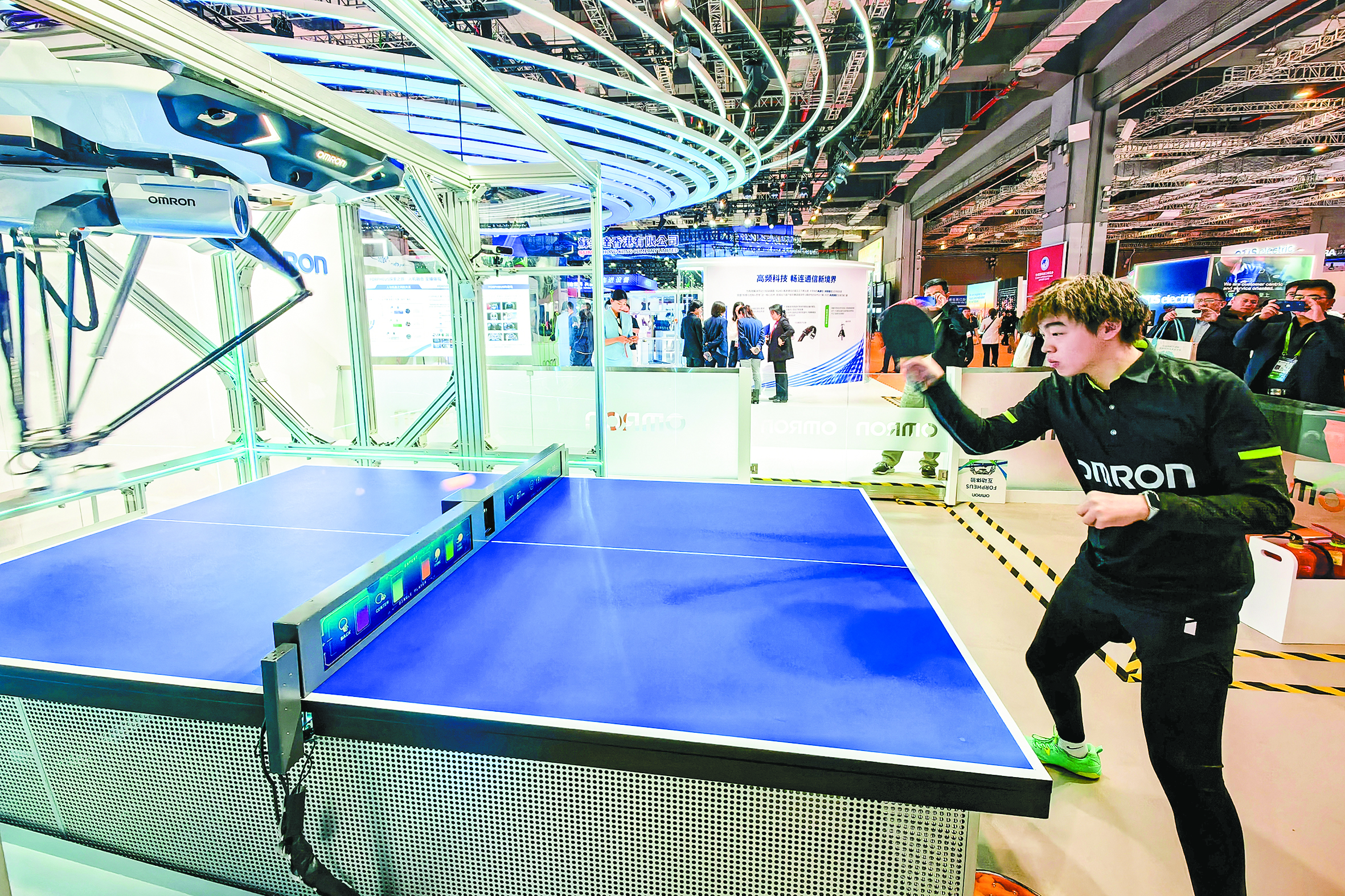 吸引眼球的還有技術裝備展區的歐姆龍,該公司的“FORPHEUS”乒乓球教練機器人今年再度亮相進博會,還邀請乒乓球世界冠軍牛劍鋒與機器人交鋒。據介紹,通過傳感器,機器人可精準捕捉乒乓球和玩家在對打時豐富的信息,並即時顯示玩家的心率,面部表情、眨眼次數等,並通過連續對打來測定能力,選擇合適的水平回球。