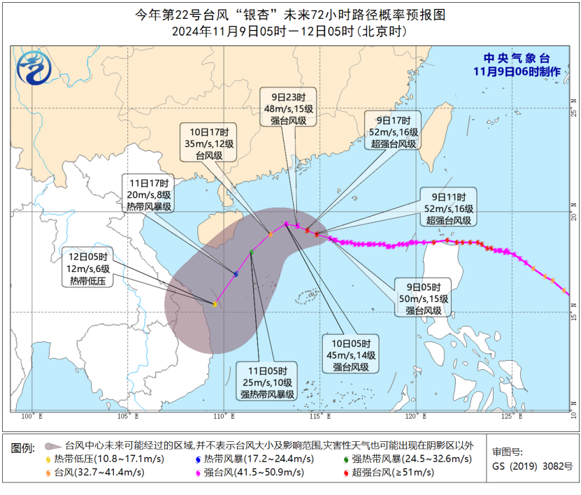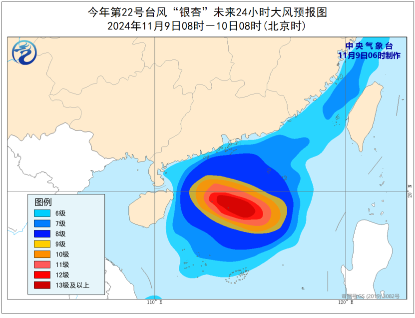 中央氣象台11月9日06時繼續發佈颱風黃色預警*:*