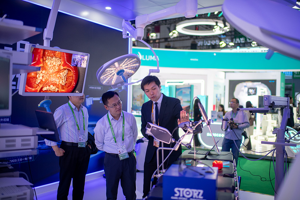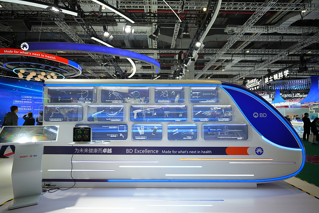 眾多醫療企業展示了在健康養老方面的創新成果。碧迪醫療設立“銀髮健康及居家護理”沉浸式場景化專區,整合涵蓋家庭護理至社區醫療的前沿產品、解決方案與服務體系。產品方面,碧迪醫療展示了全球首個非侵入式並降低導尿管相關尿路感染的PUREWICK®女用導尿棒,致力提升中重度尿失禁或行動不便需要卧牀進行排尿的女性患者的居家護理質量。這類產品將醫療服務場景從醫院延伸至社區及家庭,滿足當代社會對“備老”服務的需求。碧迪醫療全球高級副總裁、大中華區總經理鄧建民對《環球時報》記者表示,目前銀髮市場潛力巨大,無論是醫藥、器械以及居家護理領域都有很大空間。