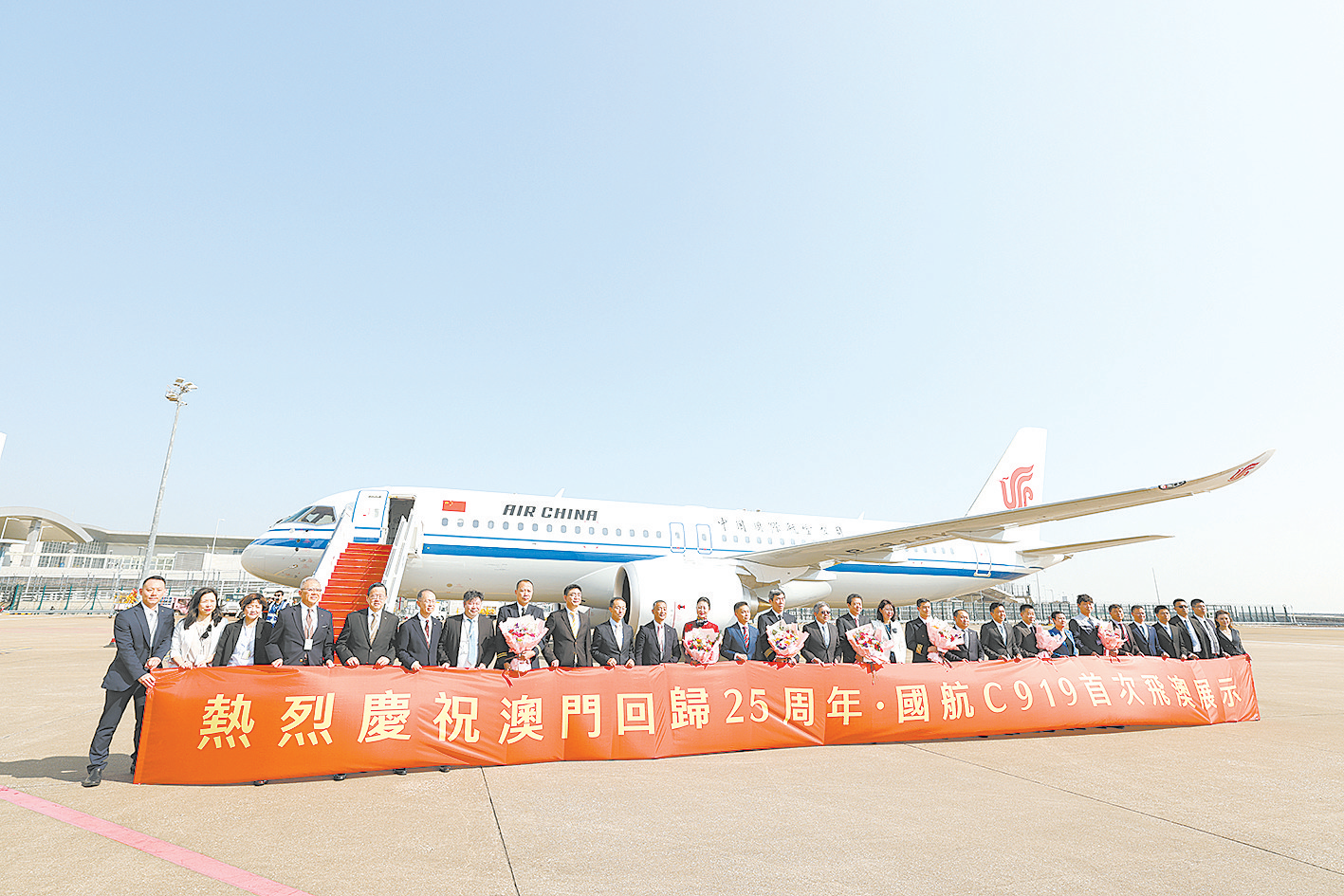 獻禮澳門迴歸祖國25週年,C919國產大飛機身披五星紅旗首次亮相澳門