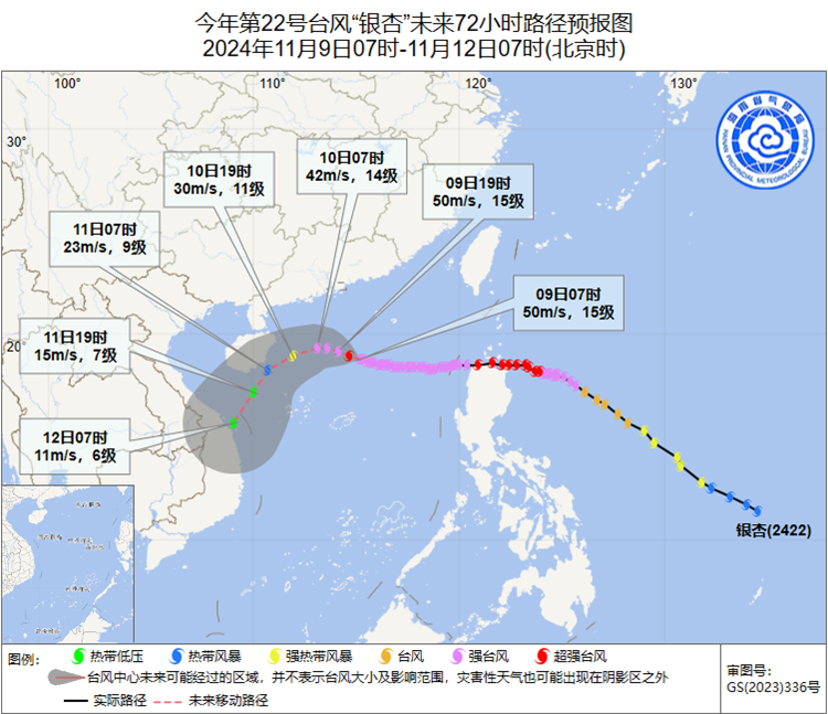 “銀杏”11月9日07時預報路徑圖