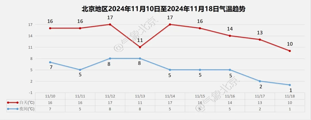 預計未來一週,北京有兩次冷空氣活動,大氣能見度階段性好轉。預計11月10日下午有3級左右偏北風,大氣擴散條件和能見度有所好轉;13日有一次小雨天氣過程,雨後偏北風逐漸加大,能見度將明顯轉好。