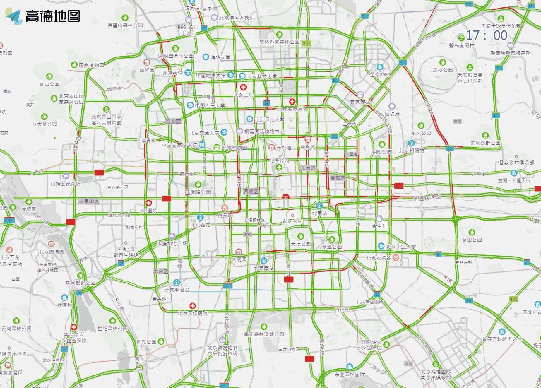 *晚高峯期間,*城區環路部分路段,萬泉河路至圓明園西路、通惠河北路、蓮石東路等城區道路出城方向車流集中,京藏高速、京承高速、京通快速、京港澳高速、機場高速等高速公路出京方向將出現潮汐車流,高峯時段為17:30—20:00,**週二、週五晚高峯交通壓力將尤為突出。