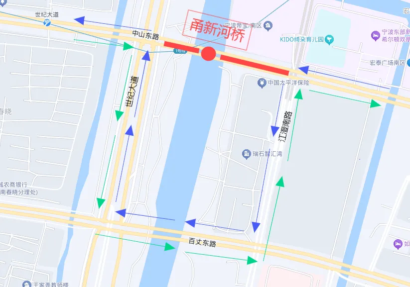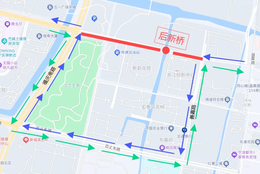 ▲甬新河橋檢測車輛繞行方案