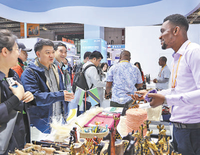 在坦桑尼亞館,一件行駛在坦贊鐵路上的列車模型,吸引了不少觀眾拍照留念。“這是兩國友誼的象徵。我們充分吸收坦方的想法和訴求,在展區佈置上突出展示中坦友誼歷久彌新。”受坦桑尼亞政府委託,東非商貿物流中心總經理王香宇參與了布展工作。她向記者介紹,今年的坦桑尼亞國家館展區總面積252平方米,39家展商參展,均創歷史新高。