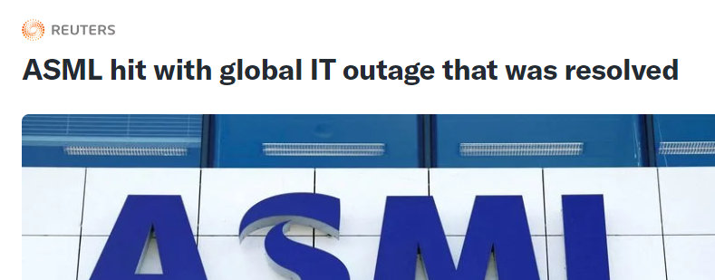 外媒:ASML遭遇了一次全球性的IT系統中斷,現已恢復