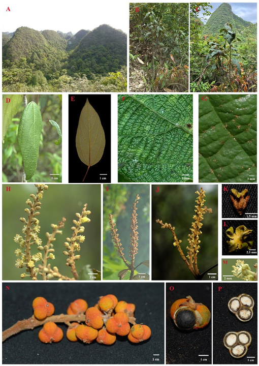 論文第一作者、貴州大學生命科學學院博士研究生餘江洪介紹,“荔波野桐”為常綠灌木或小喬木,以葉革質、葉面極為皺縮為特徵,僅分佈於茂蘭國家級自然保護區岩石裸露率95%以上的喀斯特森林中。