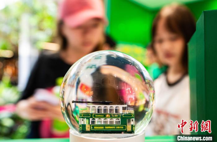 圖為位於香港中環街市內的香港電車120週年限定店內,市民遊客在此參觀、選購紀念品。 中新社記者 侯宇 攝