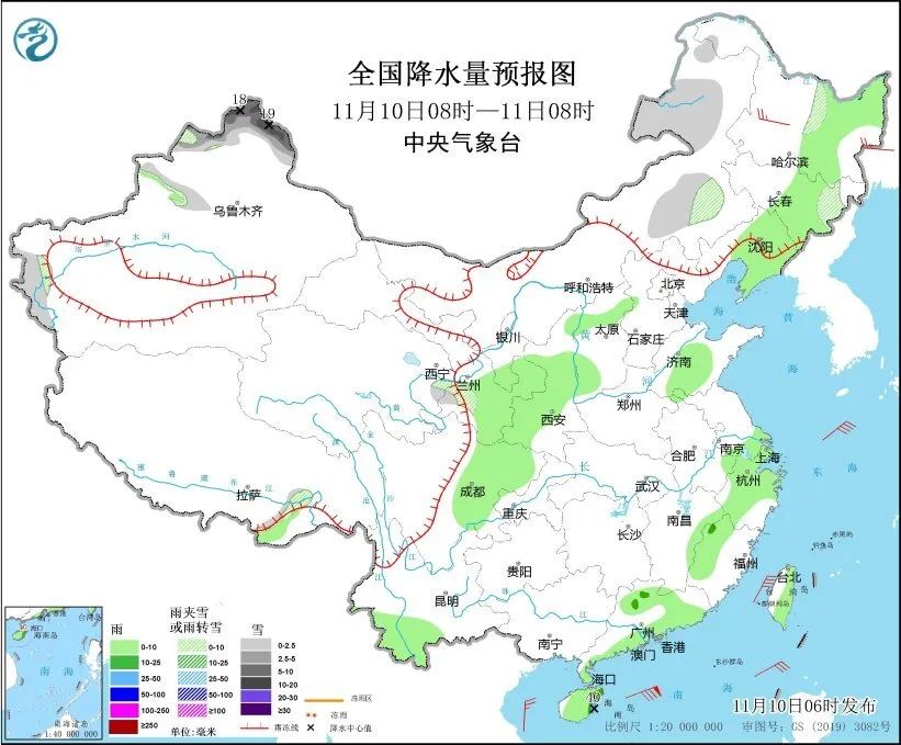 今天,受冷空氣東移影響,內蒙古中東部、東北等地有4~6級大風,氣温下降4~8℃,遼寧中北部、吉林中南部局地降温超過10℃,內蒙古東北部、東北地區有小雨或雨夾雪或雪,局地中到大雪。