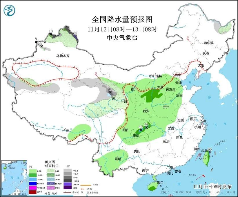 10日至12日,新疆西北部部分地區有中到大雪或雨夾雪,塔城北部、阿勒泰北部等地的部分地區有暴雪,局地大暴雪;低海拔地區有小雨。