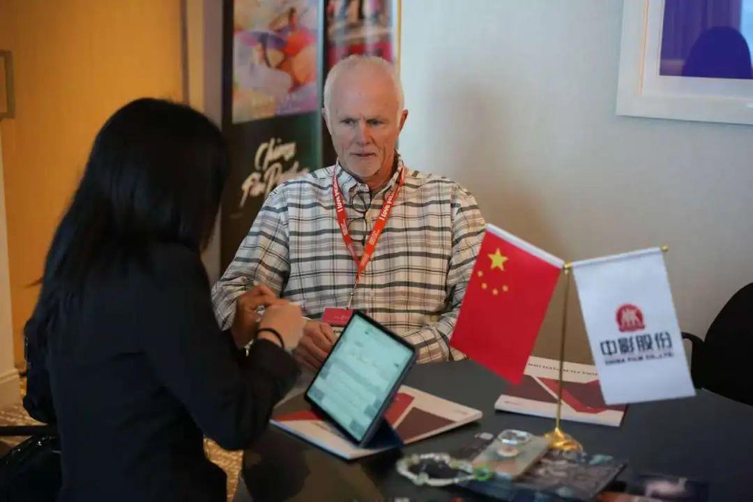 今年是“中國電影聯合展台”第二年參加美國電影市場。中國電影股份有限公司、華夏電影發行有限責任公司、上海電影集團、珠江電影集團、瀟湘電影集團、博納影業集團、江蘇幸福藍海影業、上海華人影業、中國電影資料館、中國電影基金會、北京電影學院、北京國際電影節、上海國際電影節等55家國內優質電影機構“組團出海”。其中,不少機構同時擔任“買家”與“賣家”的角色,既考察海外項目,也向全球同行推薦中國影片。