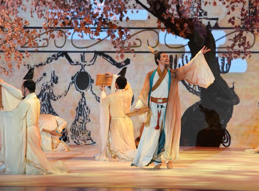 中國國家博物館劇場內,中國歌劇舞劇院的藝術家演出了原創民族舞劇《孔子》片段、經典古琴曲目《流水》,和以民族室內樂改編的希臘經典曲目《俄狄浦斯王》等,在舞台上呈現中西藝術的交相輝映。