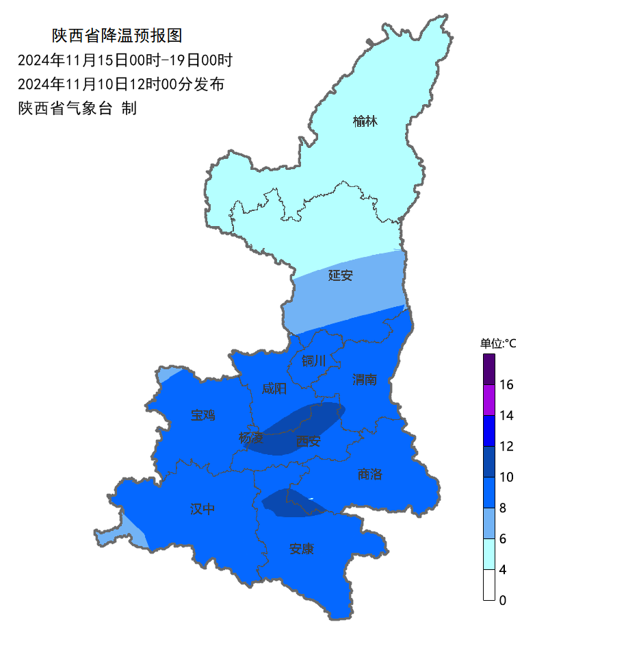 16-20日過程日平均氣温下降5~8℃。最低氣温出現在20日清晨,平原地區最低氣温降至0~2℃,秦嶺高海拔山區降至-3~0℃,南部山區部分地方有霜凍。