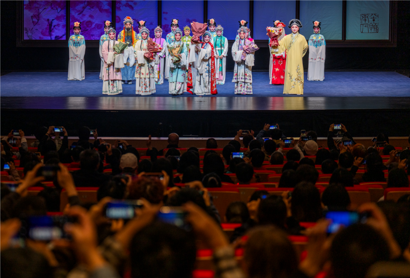一桌一椅的極簡舞台,為什麼卻能在觀眾心中撐出一個內涵極為豐富的文化空間?《牡丹亭》以其文辭典雅、語言秀麗著稱,被譽為“花中之後”,不僅是中國古典戲曲中的瑰寶,更是中國戲劇文學發展史上的重要里程碑。“我15年前第一次聽崑曲時,覺得節奏很慢,難以適應。如今再次觀看《牡丹亭》,儘管生活節奏加快了許多,我卻能更加從容地融入其中,深刻體驗到中華傳統文化之美。”觀眾於女士感嘆,不止於戲文,《牡丹亭》的聲腔、表演、舞台,每一個元素都承載着深厚的文化價值,讓人在中國式審美中共鳴於人物的精神追求。