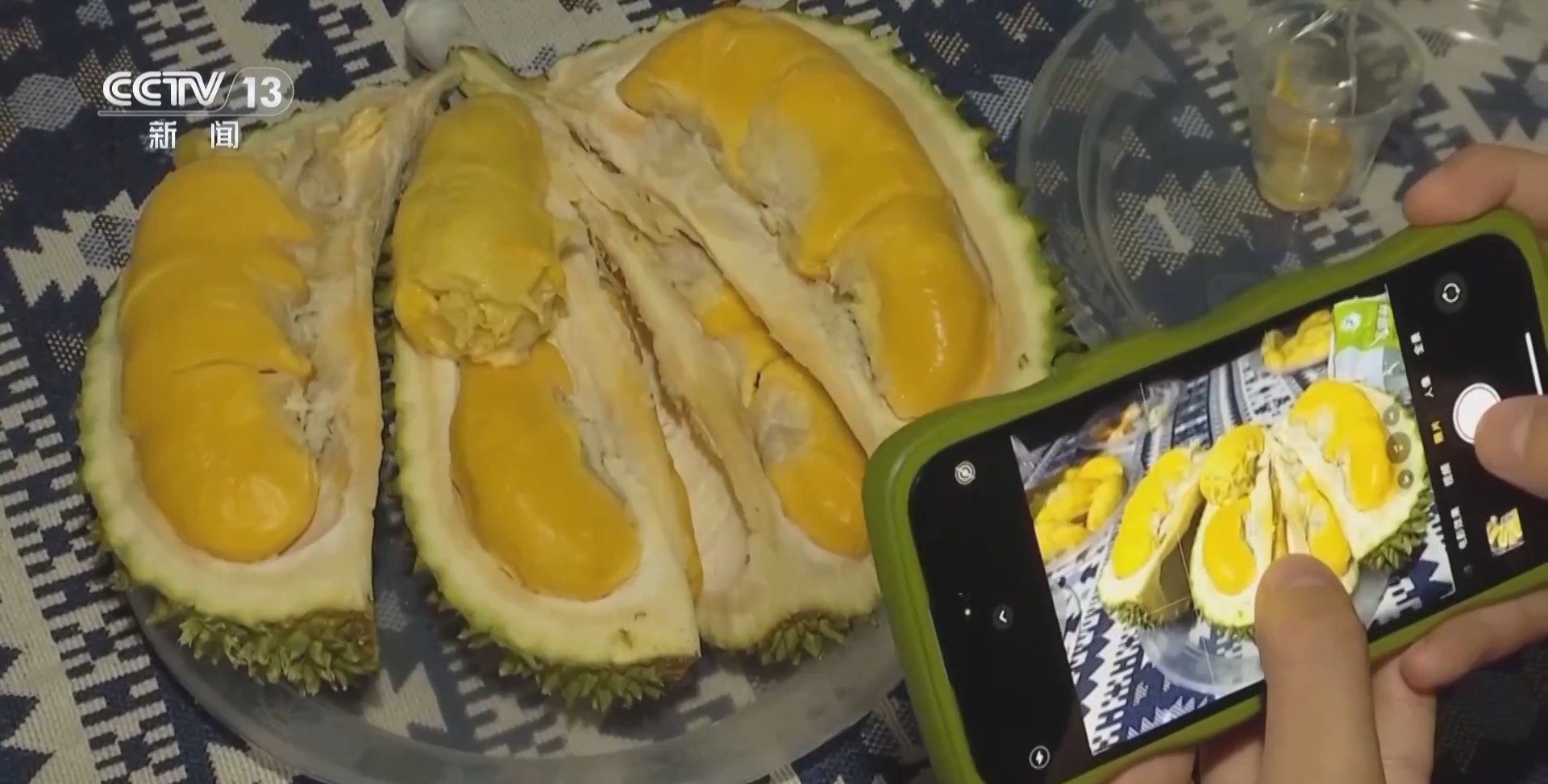 這些年有一個很流行的説法,叫“車釐子自由”,其實進博會的展區當中車釐子有很多。另一個詞也很流行,叫“榴蓮自由”,這有貓山王榴蓮,從馬來西亞直接來的,而且跟過去最大的區別是*不再是冷凍進口,而是鮮的就能直接來到中國。*我們可以實現“榴蓮自由”了嗎?