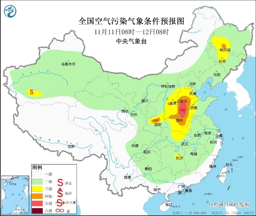 今晨,華北中南部、黃淮、江淮等地能見度較差,山東西北部和南部、河南南部、江蘇西部等地局地能見度不足200米。預計11-12日,華北中南部、黃淮西部等地仍有輕至中度霾,局地重度霾;11-12日的夜間至次日上午,河北中南部、山東、河南東部、江蘇、安徽北部等地部分地區多大霧天氣。