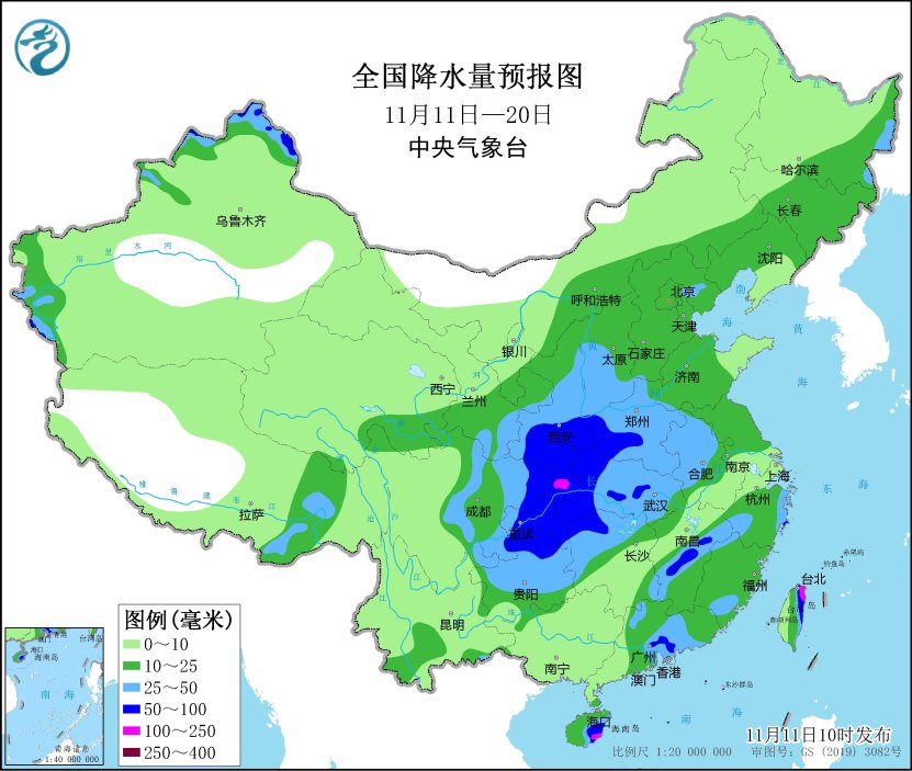 11月上旬,浙江東部、上海、海南島東部、台灣島東部及雲南中西部、四川南部等地累計降水量有60~150毫米,局地超過250毫米;上述部分地區降水量超過歷史同期極值。