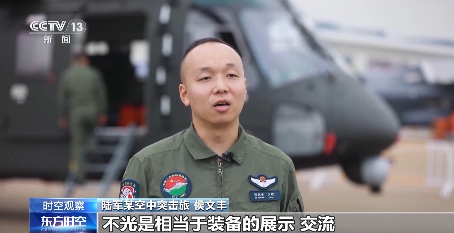 *陸軍某空中突擊旅 侯文豐:*我們在這次航展上,不光是裝備的展示、交流。還有我們進行思想和技術上的交流、文化上的交流。對於裝備上的交流,我們能夠找到自身存在的一些問題,以及我們做得好的一些方面,為我們以後的訓練打下很好的基礎。