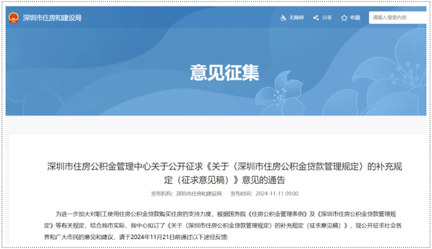 當前兩項文件徵求意見稿已發佈在深圳市住房和建設局門户網站公開徵求意見,社會各界和廣大市民可通過發送電子郵件或信函反饋意見,電子郵箱地址為:[email protected];信函郵寄地址為:深圳市福田區深南大道6011-8號深鐵置業大廈16層(郵編:518000,信封上註明“規範性文件徵求意見”字樣),意見反饋截止時間為2024年11月21日。