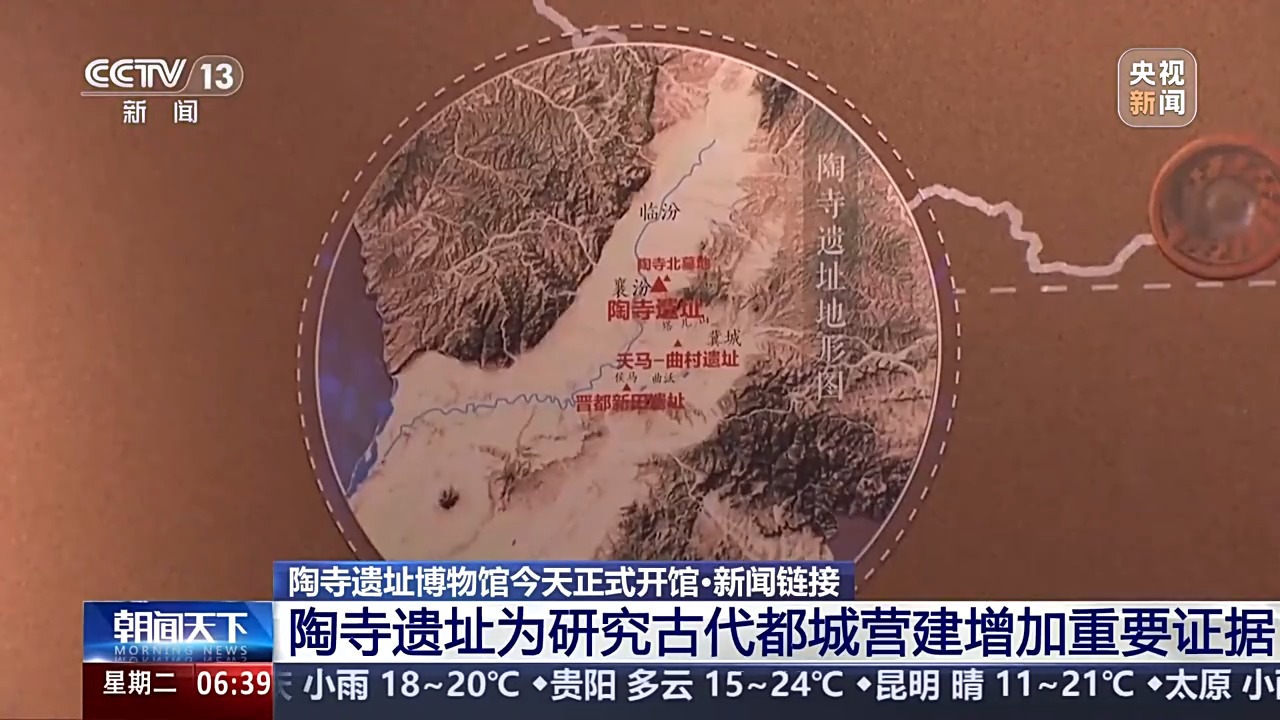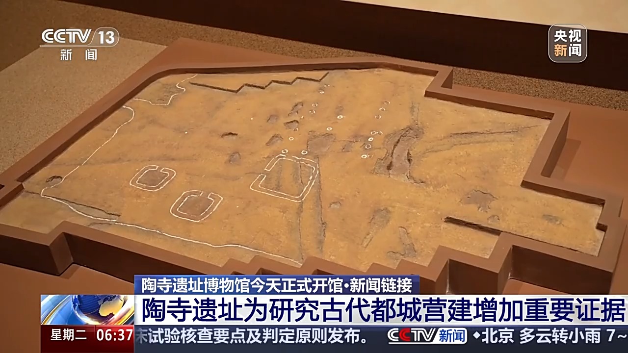 *陶寺遺址博物館講解員 劉玉茹:*到了陶寺文化中期,陶寺城址聚落形態發生了巨大的變化。早期宮城繼續沿用,並增添了外郭城。這一舉措完成了由單一的宮城,向“宮城—郭城雙城制”的轉變。