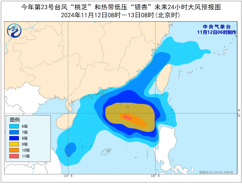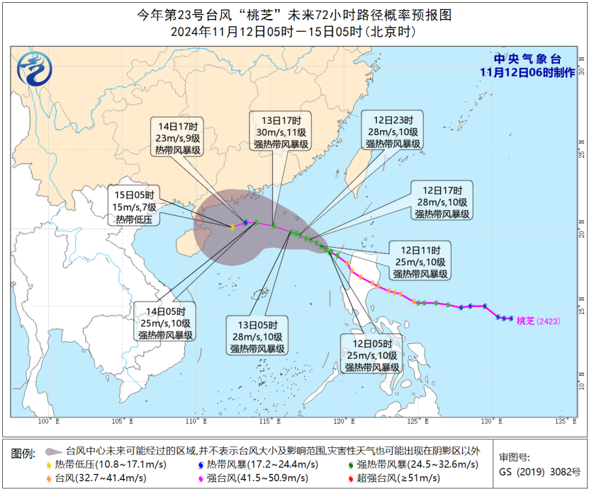 中央氣象台11月12日06時繼續發佈颱風藍色預警*:*