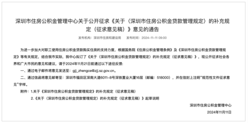 *【環球網財經綜合報道】*深圳樓市再獲政策支持,公積金貸款和利息補貼政策雙雙升級。11月11日,深圳市住房公積金管理中心發佈《關於〈深圳市住房公積金貸款管理規定〉的補充規定》和《關於我市住房公積金利息補貼有關事項的通知》兩項文件的徵求意見稿,為提高公積金貸款最高額度並加大對繳存職工的利息補貼力度,進一步刺激樓市健康發展。