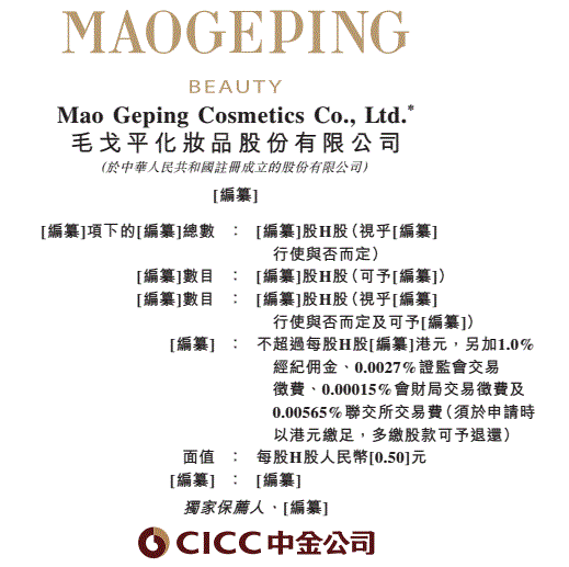 毛戈平化妝品股份有限公司擬在香港聯合交易所上市
