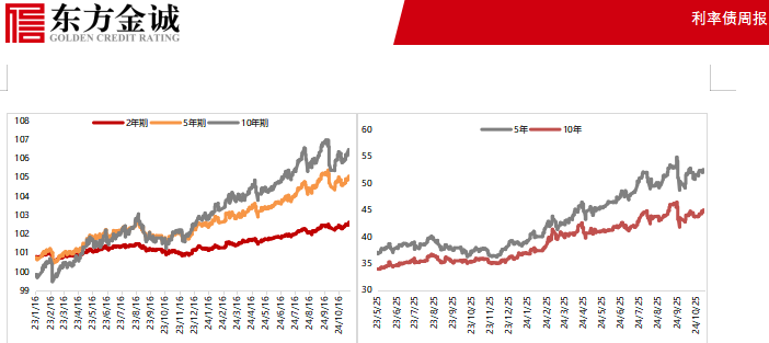 具體來看,10年期國債期貨主力合約全周累計上漲0.29%,10年期國債收益率較前一週五下行3.39bps,1年期國債收益率微幅下行0.03bps,收益率曲線繼續走平。