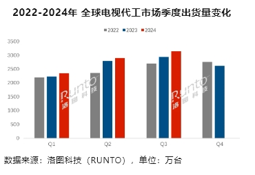 然而,與代工市場的強勁表現相比,電視終端市場在第三季度的表現則相對平淡。據洛圖科技(RUNTO)數據顯示,全球電視市場的整體品牌出貨量與去年同期基本持平。在中國市場,受中低端產品縮量以及高能效產品尚未全面鋪開的影響,當季出貨量同比下降了6.6%。