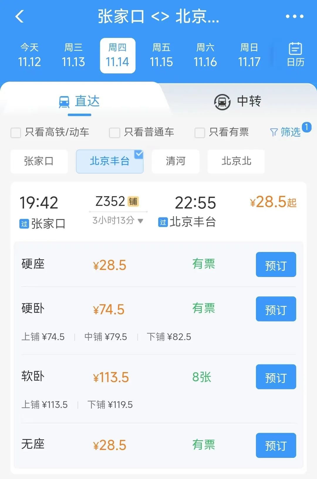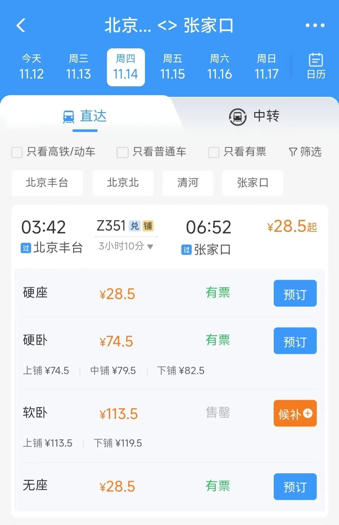 剛剛,小編在12306App查詢了豐沙線恢復後張家口⇋北京的具體車次,詳情如下↓↓↓