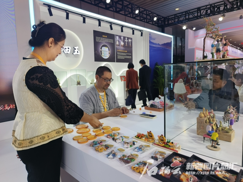 第七屆中國國際進口博覽會人文交流展區的新疆館人氣爆棚。和田玉、艾德萊斯綢織染技藝、和田藥茶、新疆麪塑、阿勒泰文創等非物質文化遺產項目及全疆各地具有代表性的文旅資源和文化創意產品,吸引國內外客商駐足觀看。