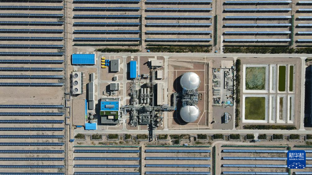 這是我國第一座、全世界第三座投入商業化運行的熔鹽儲能塔式光熱電站。