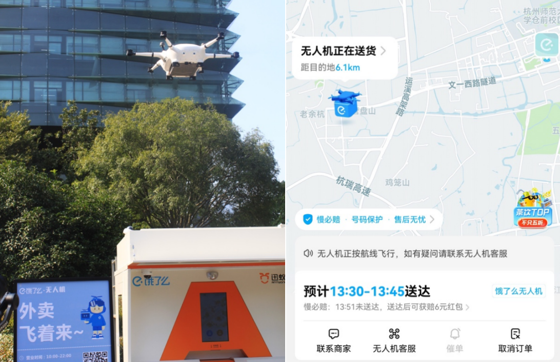 餓了麼開通浙江無人機外賣航線 外賣可選無人機送達