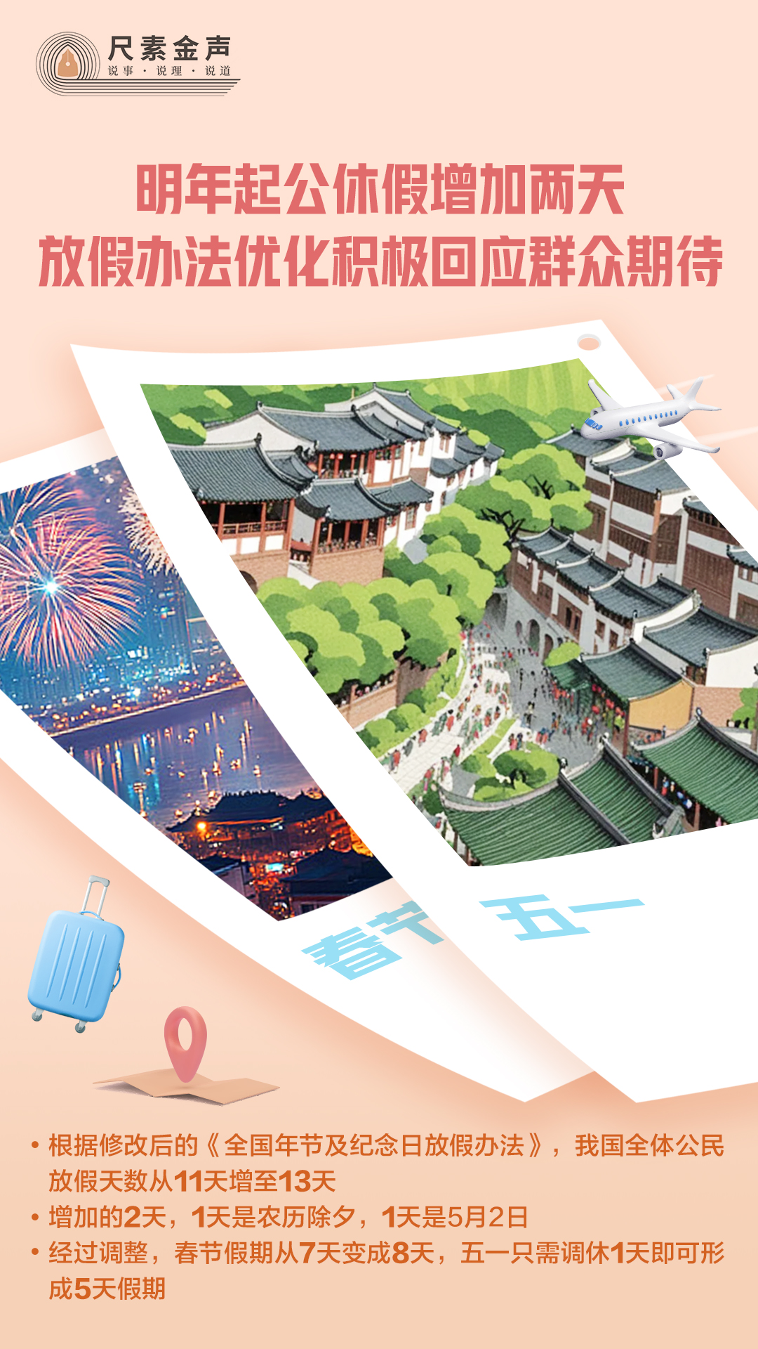 尺素金聲丨明年起公休假增加兩天,放假辦法優化積極回應羣眾期待