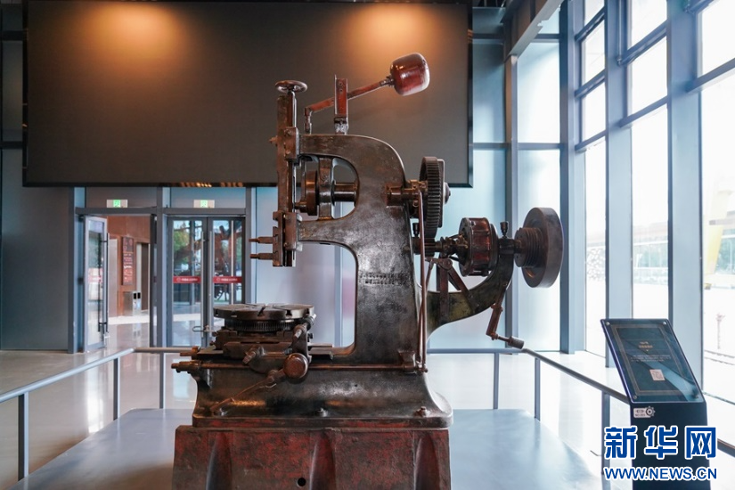 博物館大廳內展示的這台老機牀,是法國米盧斯杜克芒公司於1867年製造的插牀,為國家一級文物。
