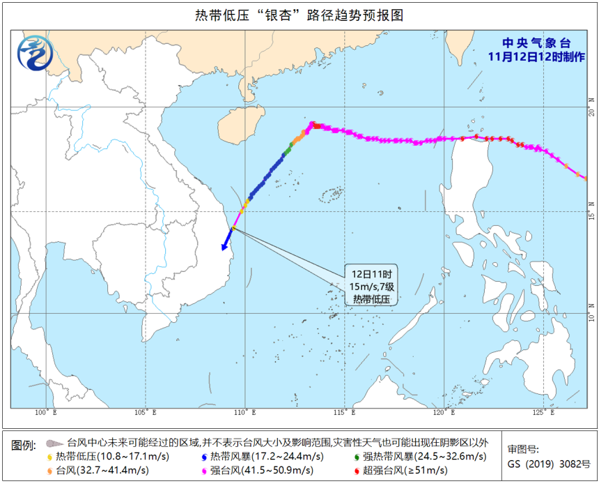 另外,*今年第22號颱風“銀杏”*減弱後的熱帶低壓風力進一步減弱,已很難確定其環流中心,中央氣象台於12日14時對其停止編號。