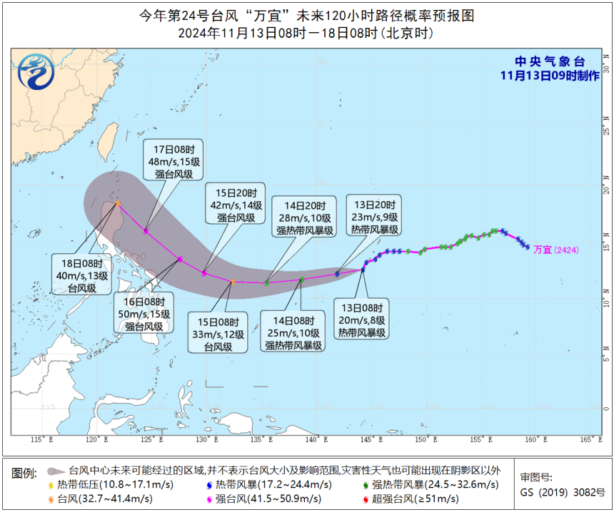 預計,“萬宜”將以每小時20公里左右的速度向西偏南方向移動,強度逐漸增強。