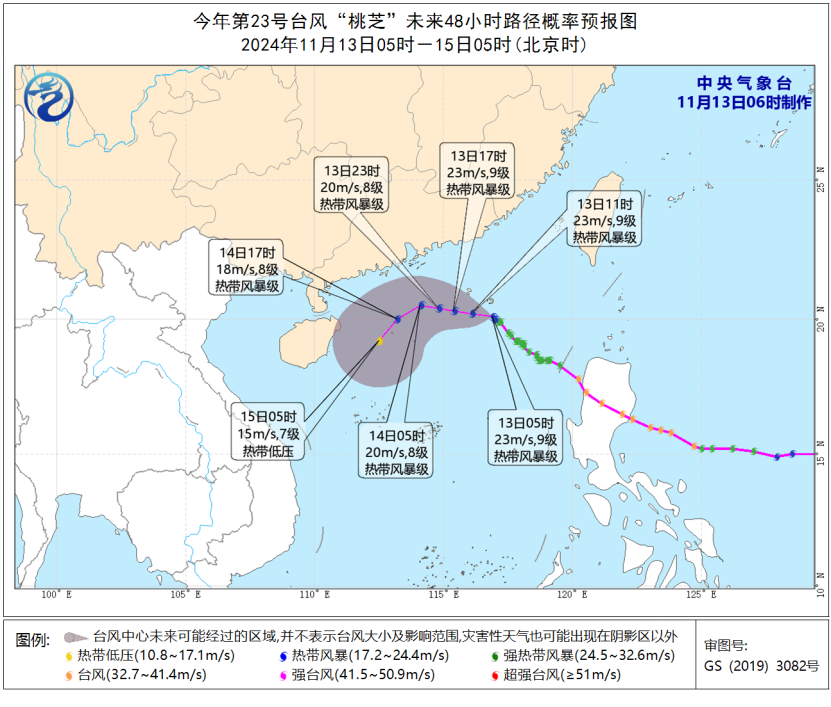 “桃芝”的外圍環流將於13-15日影響深圳,海上交通、港口碼頭、高空作業等要做好對大風的防範;