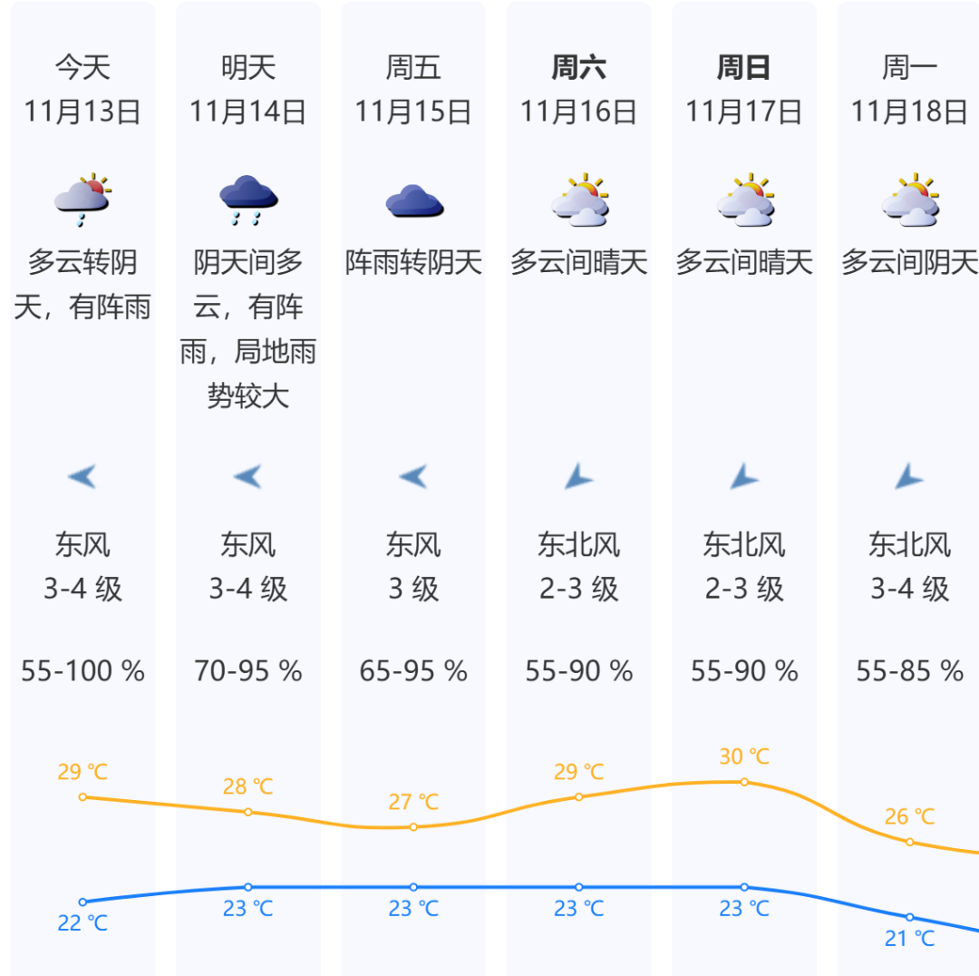 廣東省氣象局氣象專家預計,11月13日起,受“桃芝”外圍環流影響,粵東、珠江三角洲中東部市縣將出現降雨。
