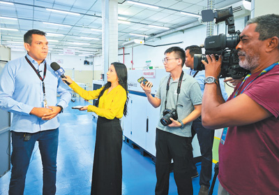 中巴兩國記者在馬瑙斯比亞迪電池工廠採訪。