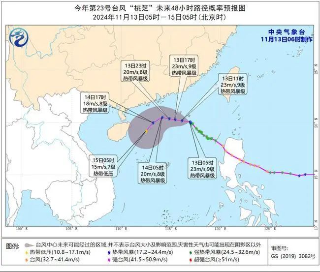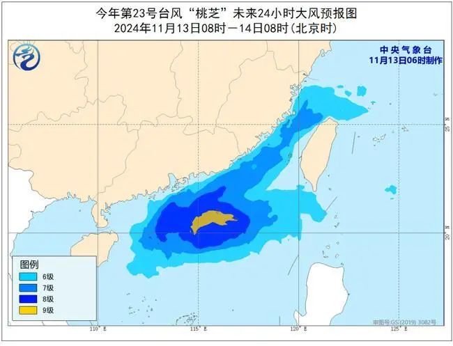 中央氣象台11月13日06時繼續發佈颱風藍色預警