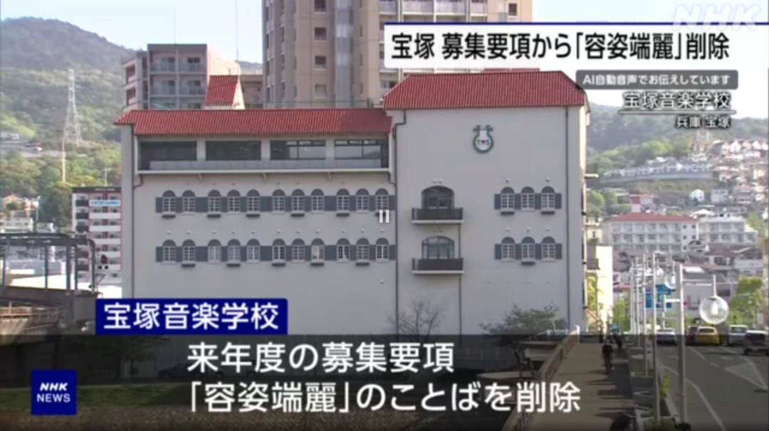 據日本廣播協會(NHK)12日報道,有着百年曆史的日本知名藝術院校寶冢音樂學校,在2025年的招生要求中刪除了“姿容端麗”這一條件。