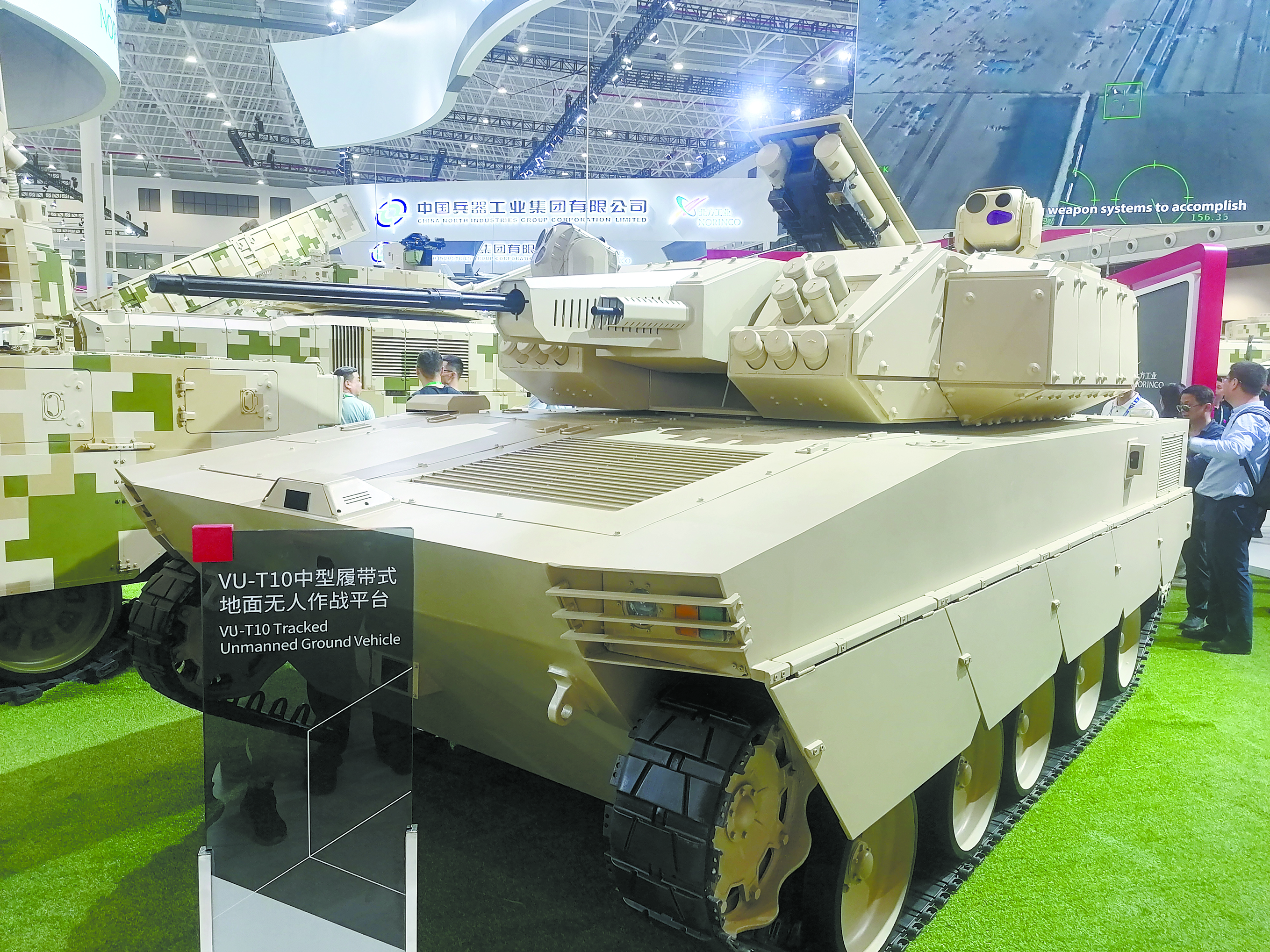 此外,近年局部衝突的經驗也證明,無人作戰車輛在未來戰爭中的地位將越來越重要。程子恆介紹説,機動突擊作戰系統中包括VU-T10中型無人地面作戰系統。這種無人戰車配備有30毫米遙控武器站和紅箭-12反坦克導彈,對於裝甲目標和防禦工事有較好的打擊能力。更關鍵的是,這種採用純電驅動的無人戰車可以在10公里外遙控作戰,如果得到無人機中繼通信,遙控距離甚至遠達25公里。它既可以配合VT5U坦克協同作戰,也可以獨立作戰,在執行城市巷戰或攻堅任務時能有效降低人員傷亡。