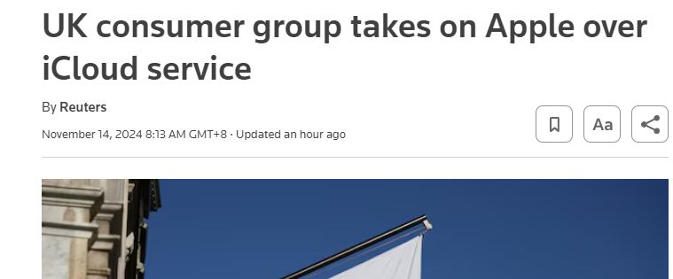 【環球網財經綜合報道】11月14日,據路透社消息,英國消費者組織 Which? 宣佈將對蘋果公司提起法律訴訟,指控蘋果通過其 iCloud 服務實際上將數百萬客户鎖定其中,涉嫌違反競爭法。