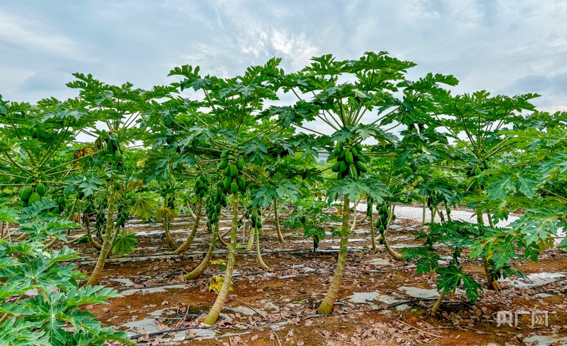 “木瓜營養價值高、口感特別、用途也很廣,可以製成木瓜絲、醬菜、木瓜酵素等等,有很好的市場前景。”廣西農墾明陽農場公司相關負責人鄒優君介紹,公司也帶領農民參與木瓜種植,免費向基地農户提供技術指導和技術培訓服務,並按訂單回收。當前,已輻射帶動周邊村民種植木瓜近3000畝。