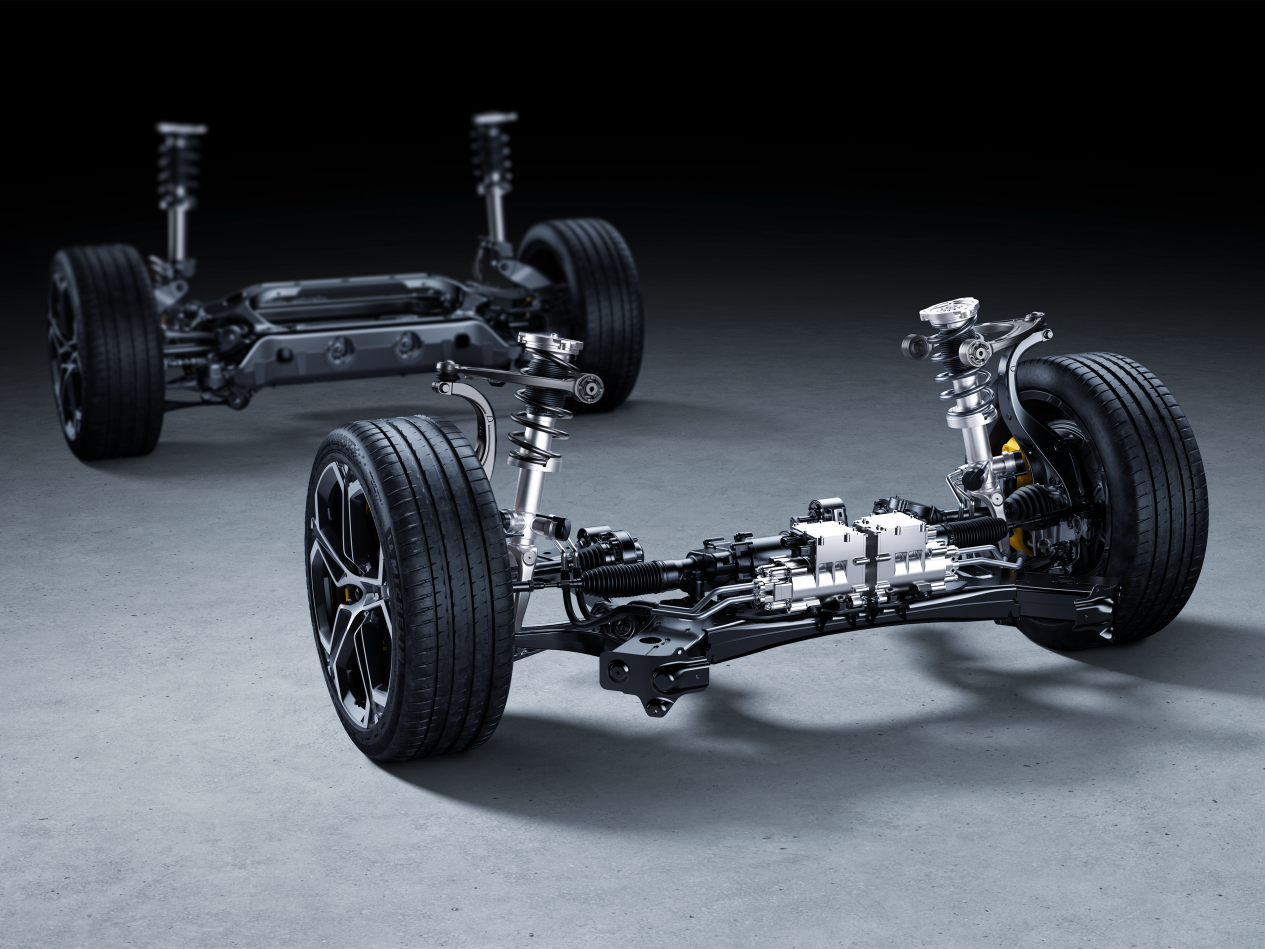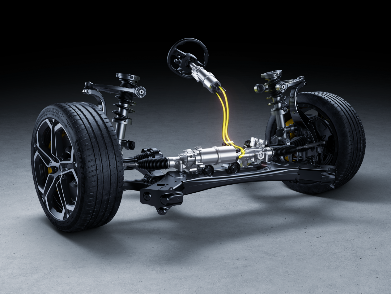 基於48V線控化,小米汽車實現了兩項技術突破:全球首創的48V全乾式線控制動和國內首創的48V線控轉向。全乾式線控制動系統提升了響應速度,降低了拖滯力矩,提升了續航里程,並提供了多種駕駛風格選擇。線控轉向技術則實現了方向盤和車輪的解耦,使方向盤的轉角與車輪轉角的關係可用軟件調節,從而兼顧了低速轉彎的靈活性和高速變道的穩定性。