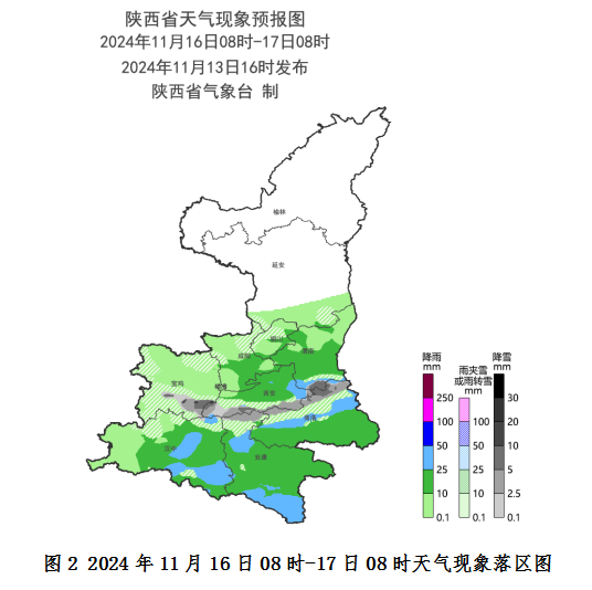 16日關中、陝南西部小到中雨(5-15mm),陝南東部中到大雨(10-30mm),其中關中北部及西部、商洛有雨夾雪或小到中雪(1-4mm),秦巴山區有雨夾雪或大雪(5-10mm)。
