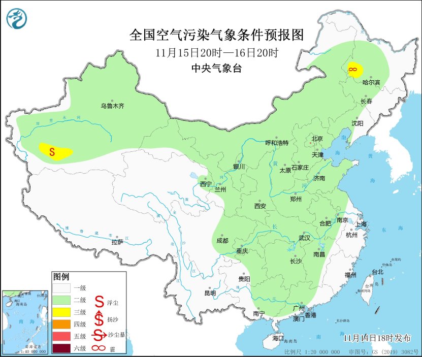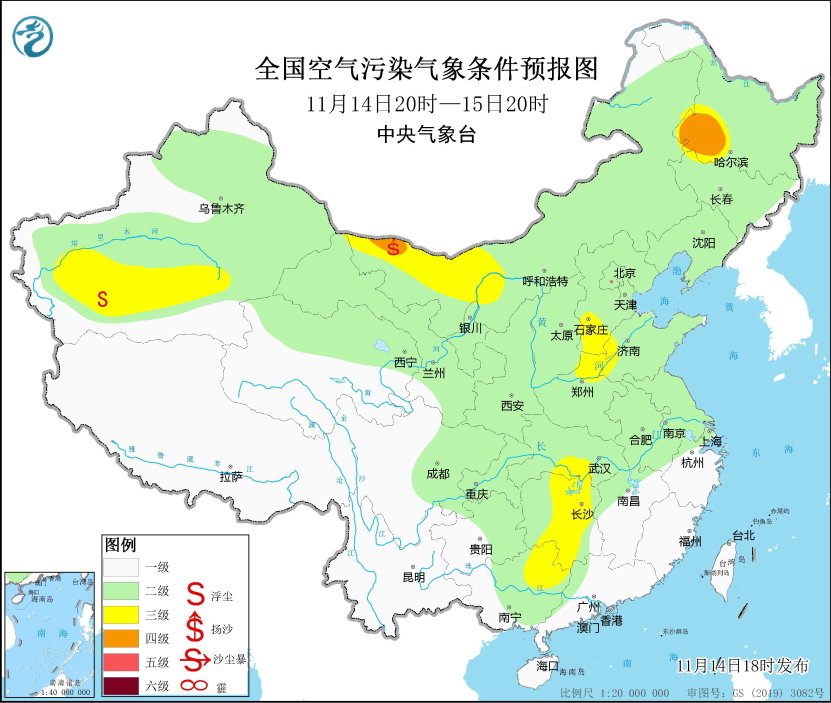 預計,11月14日夜間至15日上午,北京南部、天津、河北中南部、山東中西部、河南北部和東南部、山西中南部、江蘇中北部、陝西中北部、內蒙古中部、遼寧中南部、吉林東部、黑龍江東部和南部、四川盆地西部等地的部分地區有大霧,其中,北京東南部、河北中南部、山東西部、河南北部、黑龍江南部等地的部分地區有能見度低於500米的濃霧,局地有能見度低於200米的強濃霧。中央氣象台11月14日18時**繼續發佈大霧黃色預警。