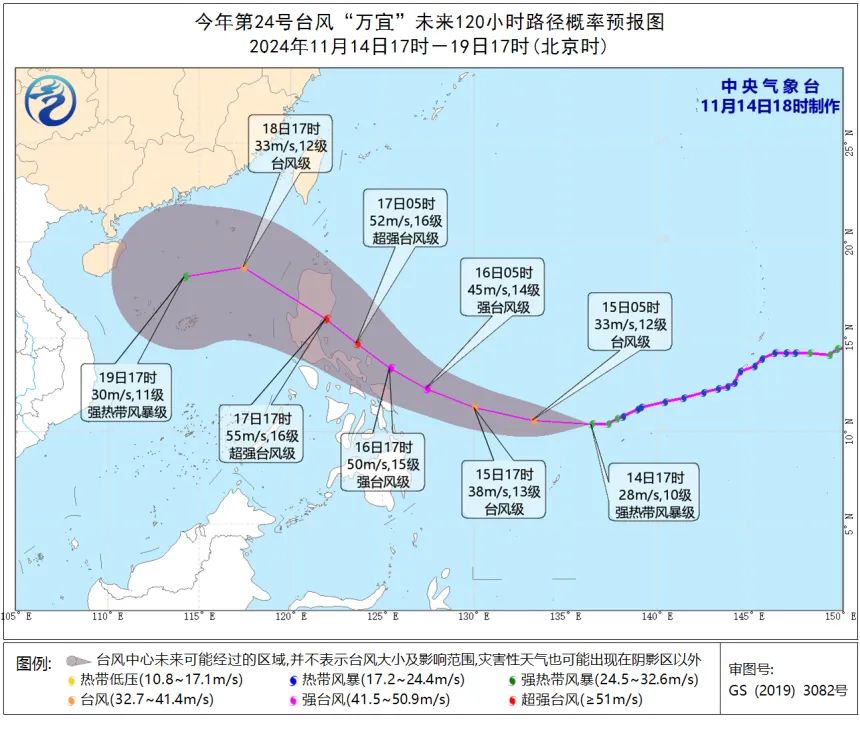 另據中國天氣網,雖然第24號颱風“萬宜”目前距離我國較遠,但也不能對其放鬆警惕。信欣表示,“萬宜”後期大概率會穿過菲律賓進入我國南海,20日前後可能會對海南產生影響,需保持密切關注。